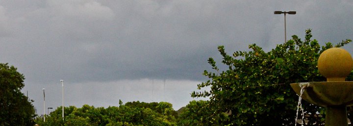 Isn’t Hawaii supposed to have perfect weather? That storm we flew through over the ENTIRE Pacific brings some heavy duty weather to Kauai on my first day: I see side-by-side water spouts from Lihue’s “mall” (more like an outdoor shopping center) (‘cause Hawaii’s weather is so lovely). It doesn’t matter that the weather’s not so stellar because Hawaii is paradisiacal, even in the rain.