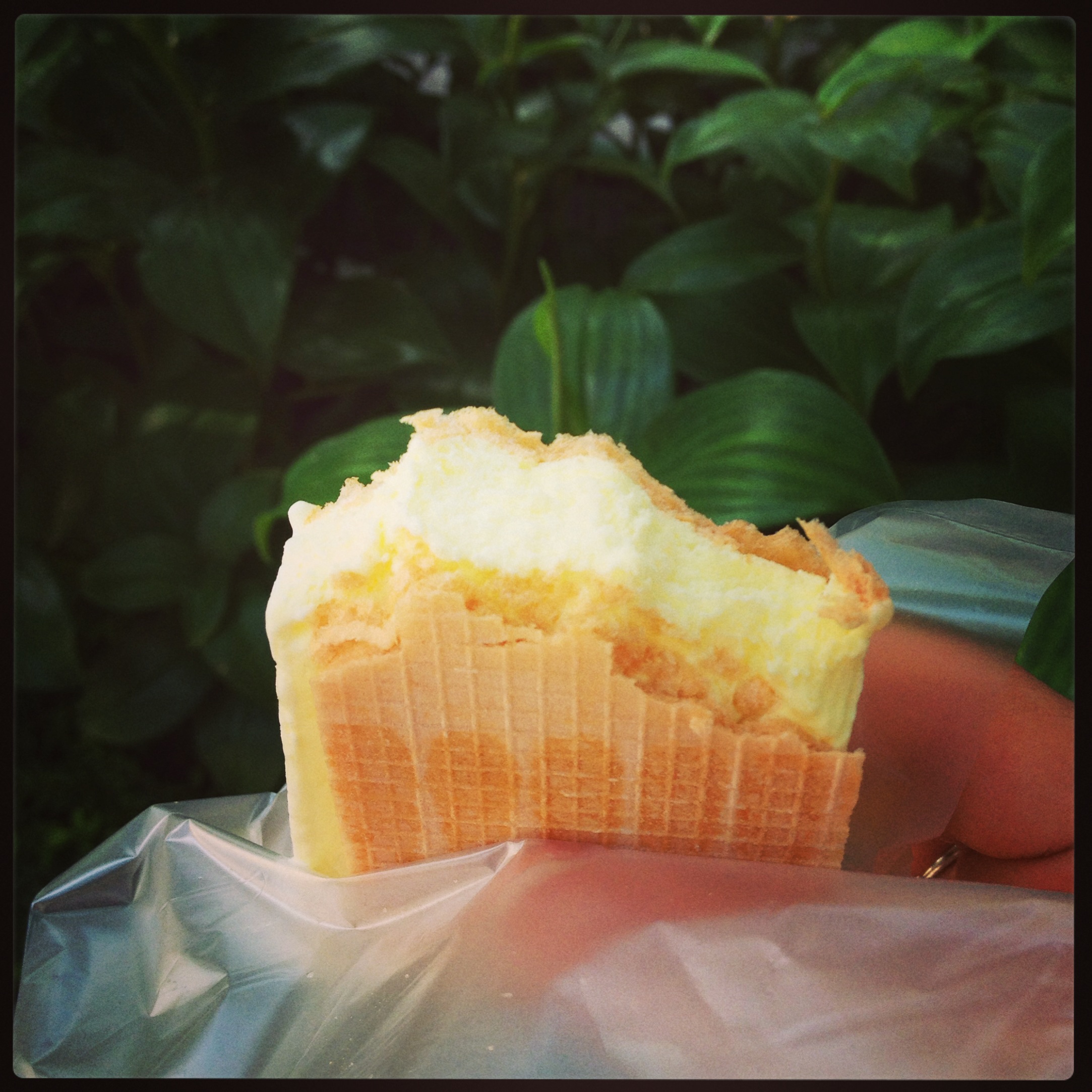 Earlier in the day, I couldn’t resist trying this $1-ice cream sandwich thing they were selling on the street. The vendors thought I was crazy for ordering the durian flavour. They handed it over, a bit reluctant, but pleased with my adventurous choice, I reckon, and said, “Smell strong, but taste okay.” Which was true.