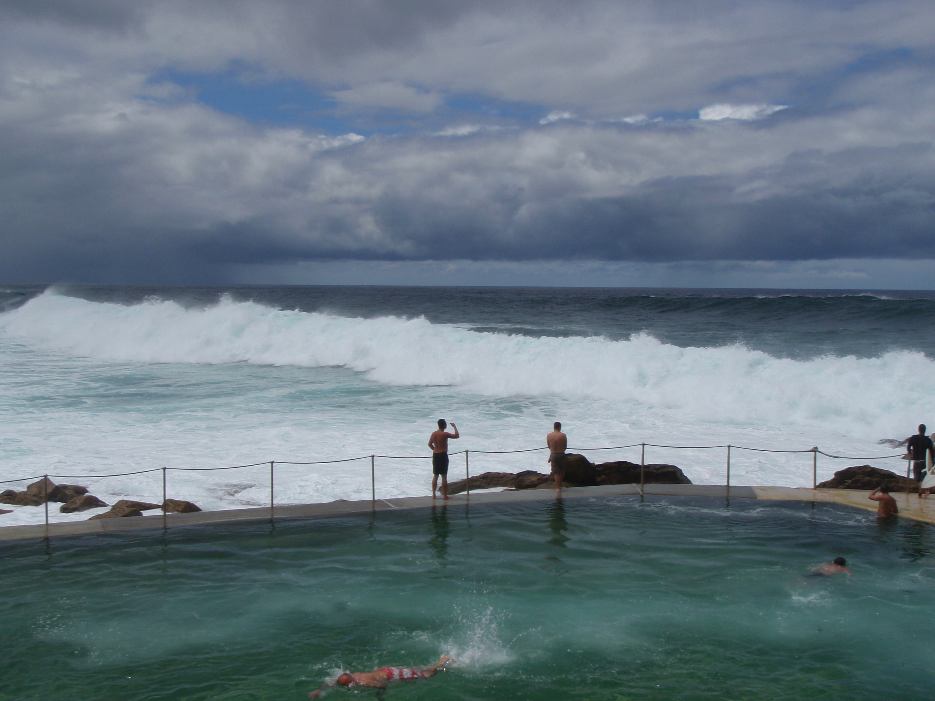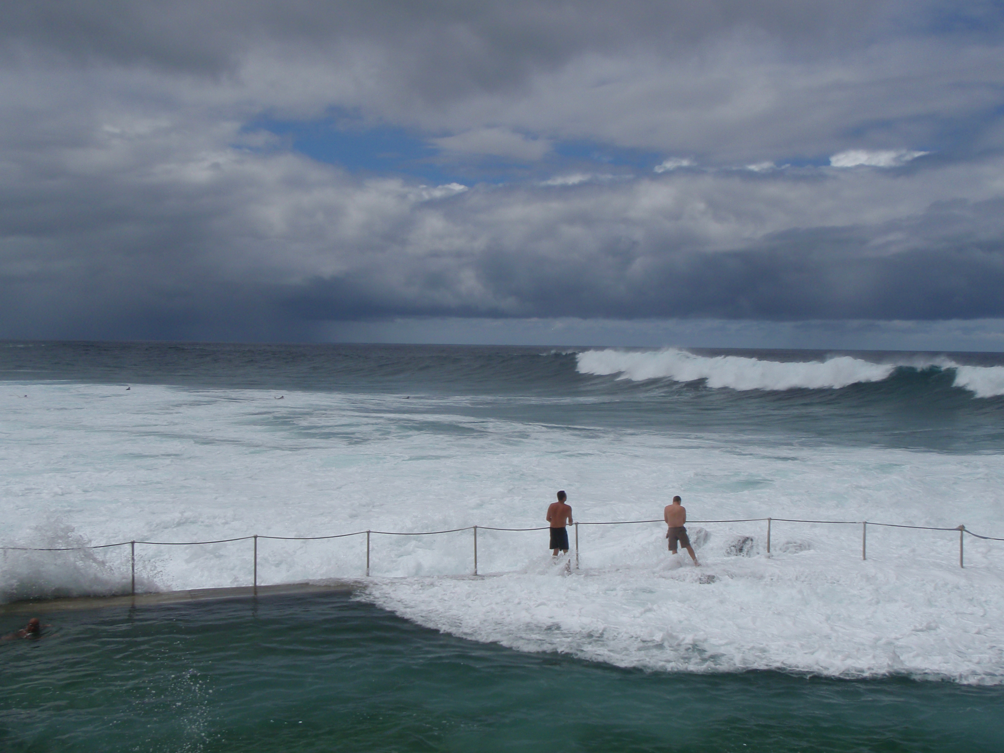 The air might smell like the copious raindrops that fill it, or like salt marsh, but my nose is stuffy. I guess that’s what I get for surfing in hypothermia-inducing, upwelled waters this afternoon. I paddled out amid the hordes at Manasquan, even though the cloud formations indicated impending doom and the water was painfully cold, because the waves actually had faces. Faces on which I could make use of the very minor trickage I have in my arsenal. The wind was blowing hard out of the south, but the jetty blocked it and surprisingly smooth peaks remained. Anyway, after about 30 seconds, my core ceased circulation to my extremities and now I can’t smell anything.