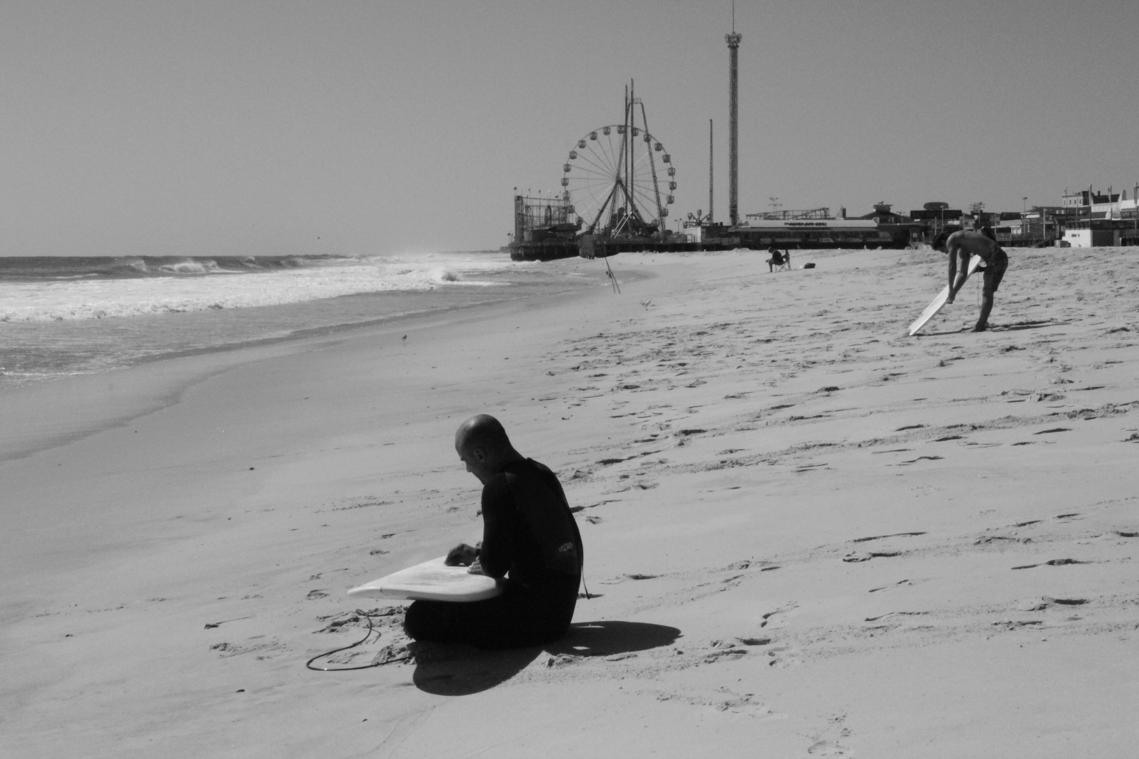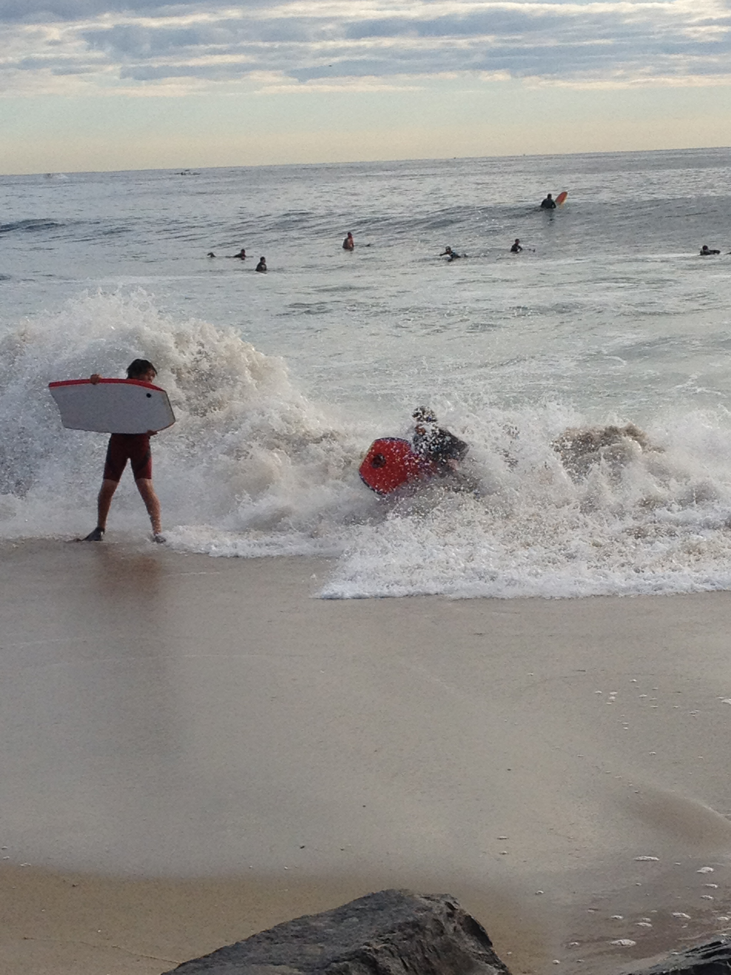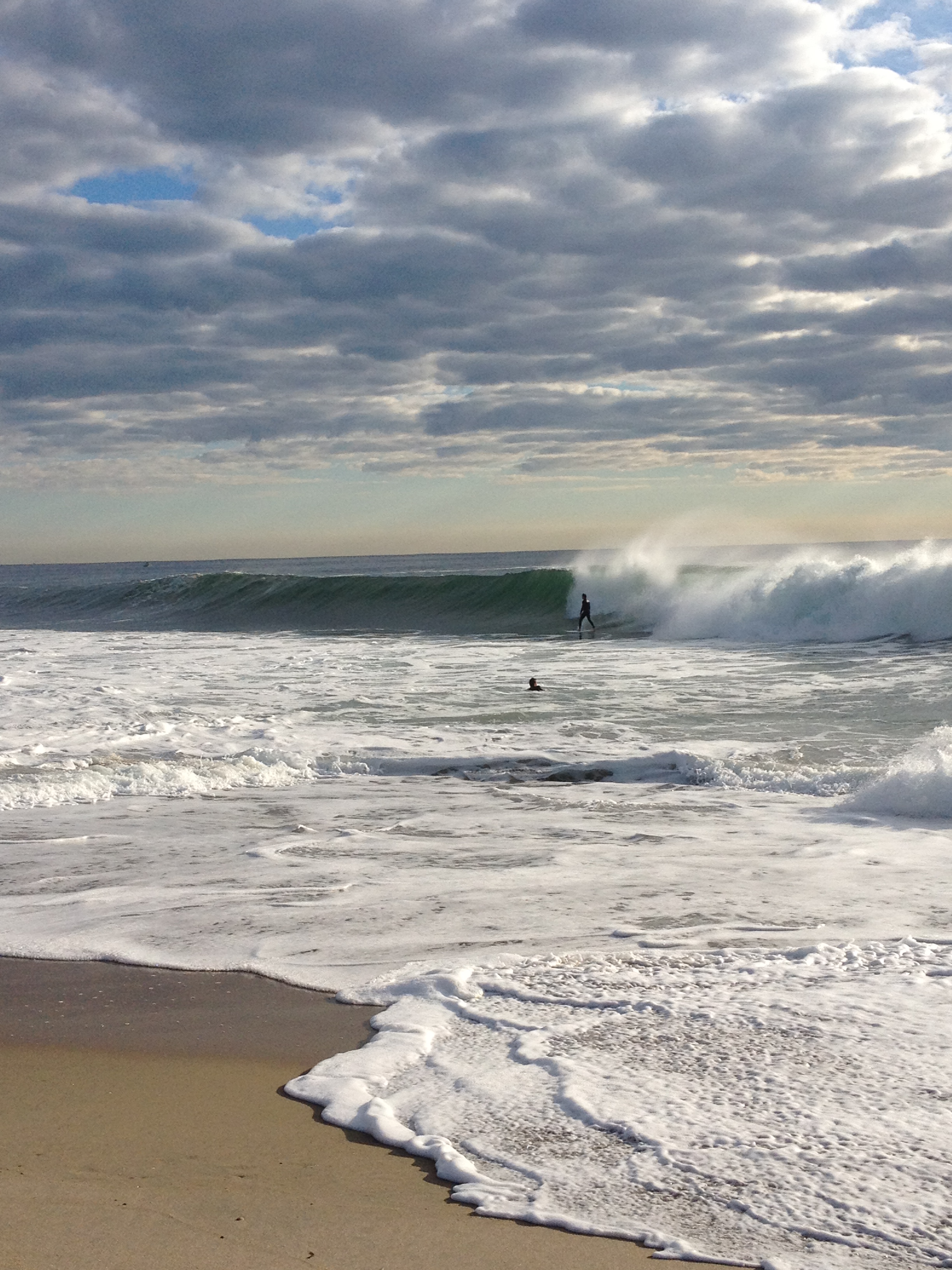 I stumbled out of bed at 5:12 a.m. on Wednesday, washed my face. Changed into a ‘kini. Pulled on cutoff jean shorts. Listened to early morning political discussions while I drove to the island. I grabbed three coffees from Wawa and grabbed two friends from up the street. We checked a spot just to the north and headed for the inlet. Somehow, we found parking. The lineup was a madhouse. Mad people, mad waves. Pulsing, beautiful, large. The skilled, the swell-deprived junkies blocked and dropped in on each other as the unskilled allowed their boards to drag them over the falls on top of their fellow watermen. And women. There were two of us out there. A minuscule percentage.
