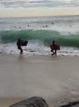 After an hour and a half, I aimed for the beach, only to be tossed around and crushed to the bottom by menacing shorebreak. I clawed my way onto the sand and sat down with a not-so-small effort to refrain from embarrassing collapse. I told myself I’d wait for Leslie to pass before paddling out again.